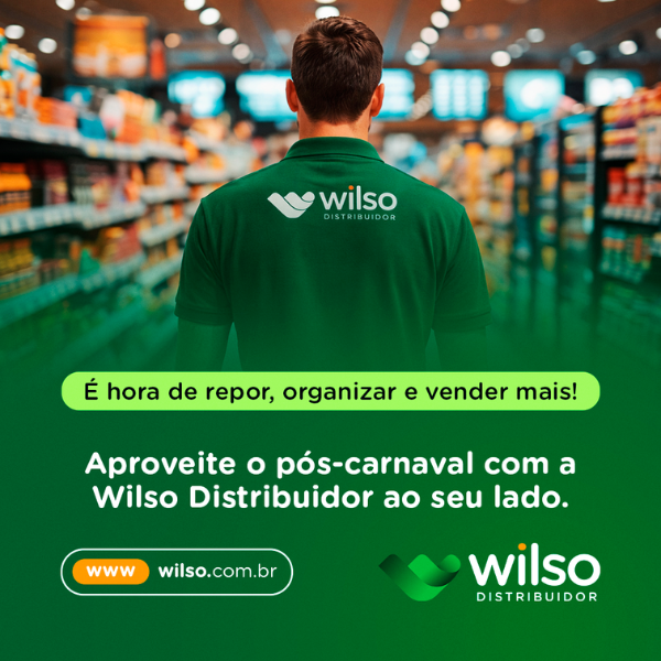 Após dias de celebração, o consumidor volta à rotina em busca de reposição, itens do dia a dia e boas oportunidades de compra. E a loja que está abastecida, organizada e preparada, aproveita melhor esse fluxo. Com logística eficiente, atendimento próximo e condições comerciais pensadas para o varejo, a Wilso ajuda a transformar esse momento em mais giro e mais faturamento. O pós-Carnaval pode ser o ponto de partida para um mês de bons resultados. Conte com a Wilso Distribuidor para abastecer sua loja com estratégia e segurança.