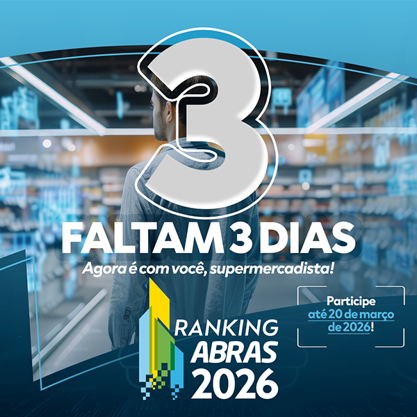 E a sua empresa, já respondeu o Ranking Abras 2026? Se não, ainda há tempo, faltam 3 dias para o preenchimento da pesquisa. Com informações estratégicas como faturamento, formatos de loja e meios de pagamento, o relatório traça um panorama atual, ajudando a mapear o posicionamento das empresas e a evolução do setor.