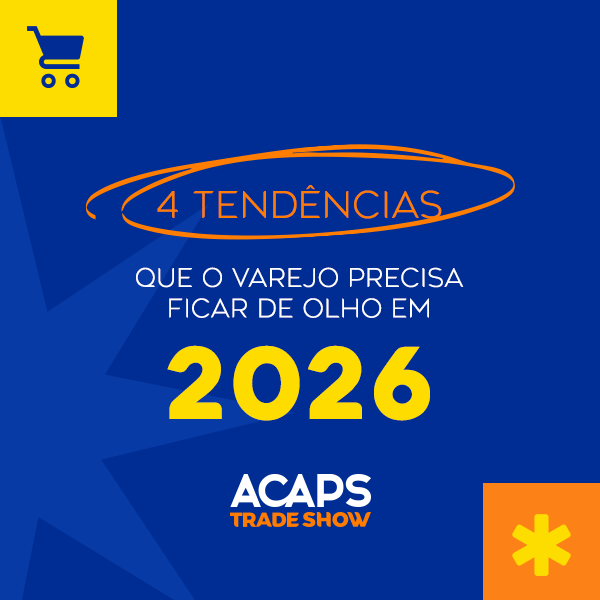 Para manter a competitividade neste cenário, é importante ficar atento às tendências que já estão moldando o consumo e a jornada de compra. Uma boa notícia é que na Acaps Trade Show 2026, de 15 a 17 de setembro, você pode ver tudo isso de perto, aprofundar o conhecimento, conectar-se com a indústria e se preparar para o que vem por aí.